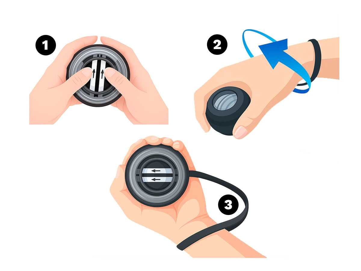 - 🔹 Aceleración: Mueve la muñeca en círculos suaves y pequeños. Aumenta la velocidad para sentir más resistencia. No uses movimientos bruscos.